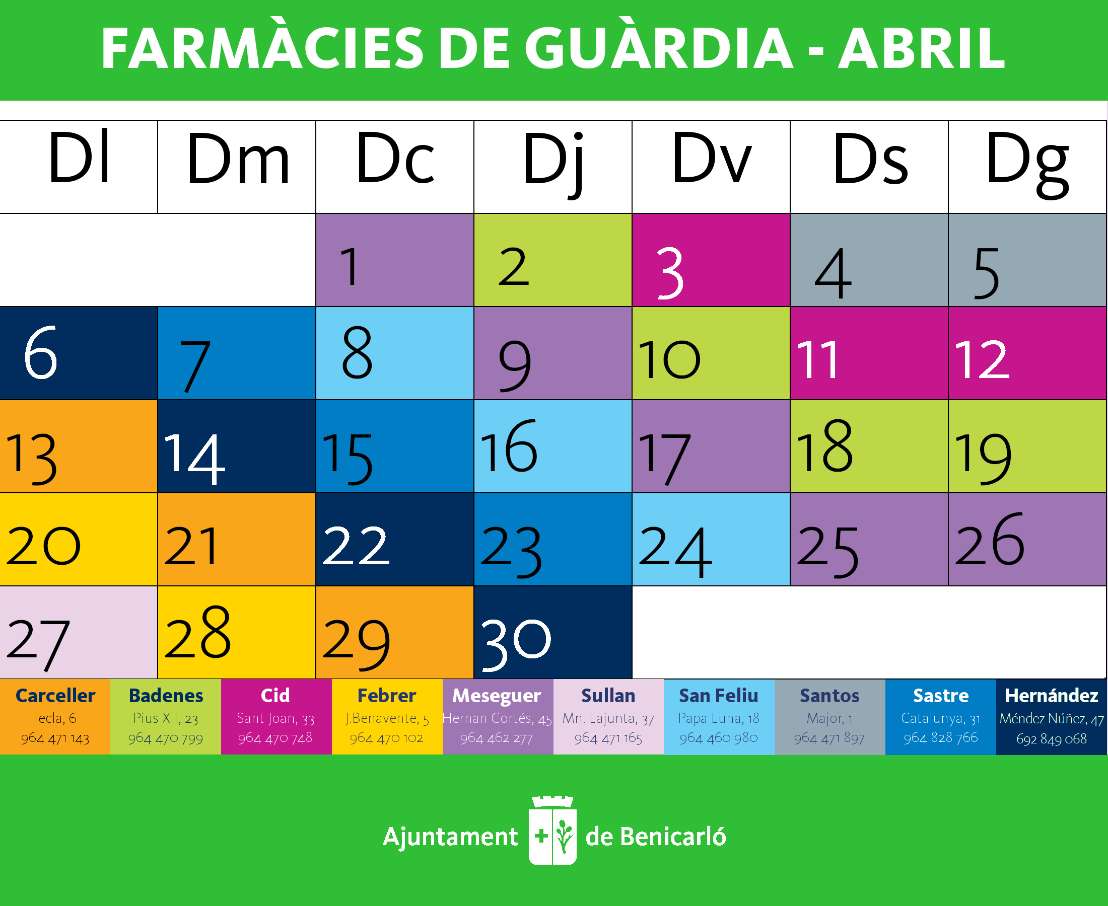 Farmàcies de guàrdia per al mes d'abril