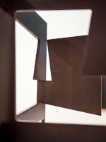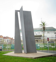 De todas ellas, siento predilección por aquellas en las que toma el pulso a la luz, horadando el plano y dejando penetrar el misterio de lo inaprensible, como la que pudo realizar en toda su extensión en Hernani. Esa escultura desmaterializada, que es la que debería unirle más a su maestro Oteiza, es sin embargo la que le conecta sobre todo con Chillida, su otro guía, el venerado elogiador del aire, del viento, de la luz, del agua, de la música callada, habitante de un lugar, con centro propio, sobre el que gira el Universo. Iñaki Ruiz de Eguino comparte con él una visión poética que no hubiera sido del agrado de Oteiza, menos lírico, pero que no se contenta en sus piezas con un resultado sólo conceptual, sino que busca además su lado estético, porque sabe que en la verdad de la belleza se encuentra la quintaesencia de lo artístico.