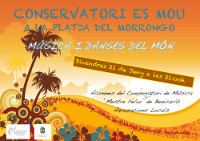 L'esplanada de la platja del Morrongo serà l'escenari triat per a fer un recorregut per les músiques i danses d'arreu del món. Els alumnes de percussió donaran inici al concert amb una espectacular batukada que farà el recorregut des del Conservatori fins a la platja. Els alumnes de l'especialitat de vent, per la seu banda, interpretaran tangos i peces de ragtime (un estil de música vinculat amb el piano i els ritmes sincopats), mentre que els alumnes de saxòfon també tindran una part destacada en l'espectacle interpretant temes actuals, com les cançons de la famosa Lady Gaga.