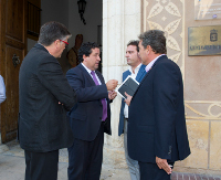 El presidente de la Diputación de Castellón , Javier Moliner, ha comparecido esta mañana en Benicarló con el alcalde de la localidad, Marcelino Domingo, y sus homólogos de Peñíscola, Andrés Martínez, y Vinaròs, Juan Bautista Juan, para dar cuenta a los vecinos del norte de la provincia de las conclusiones de la reunión mantenida ayer en Madrid con el ministro de Industria, Energía y Turismo, José Manuel Soria, respecto a los seísmos acontecidos en la comarca y vinculados al proyecto Castor.