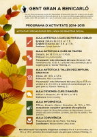 De fet, una de les prioritats de la formació per al curs 2014-2015 seran les activitats artístiques. Hi haurà un curs de pintura i dibuix els dilluns i dimecres, a càrrec de George Stanislav; un curs de teatre els dimarts, que donarà Josi Ganzenmuller; i un taller d'escriptura creativa els dijous, que anirà a càrrec d'Alicia Coscollano. Cadascun des de la seua vessant, els tres tallers pretenen convertir-se en una oportunitat per a aquelles persones que al llarg de la seua vida haurien volgut pintar o fer teatre o escriure i que, per circumstàncies, no han pogut.