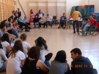 El passat dimarts 12 de maig, un grup d'usuaris de la Residència i Centre de Dia el Collet va desplaçar-se fins a l'IES Ramón Cid per a realitzar un taller d'expressió corporal que va servir als alumnes del mòdul d'Atenció a Persones en Situació de Dependència perquè conegueren de primera mà les tècniques que s'utilitzen a l'hora de treballar el moviment corporal en les persones amb discapacitat.