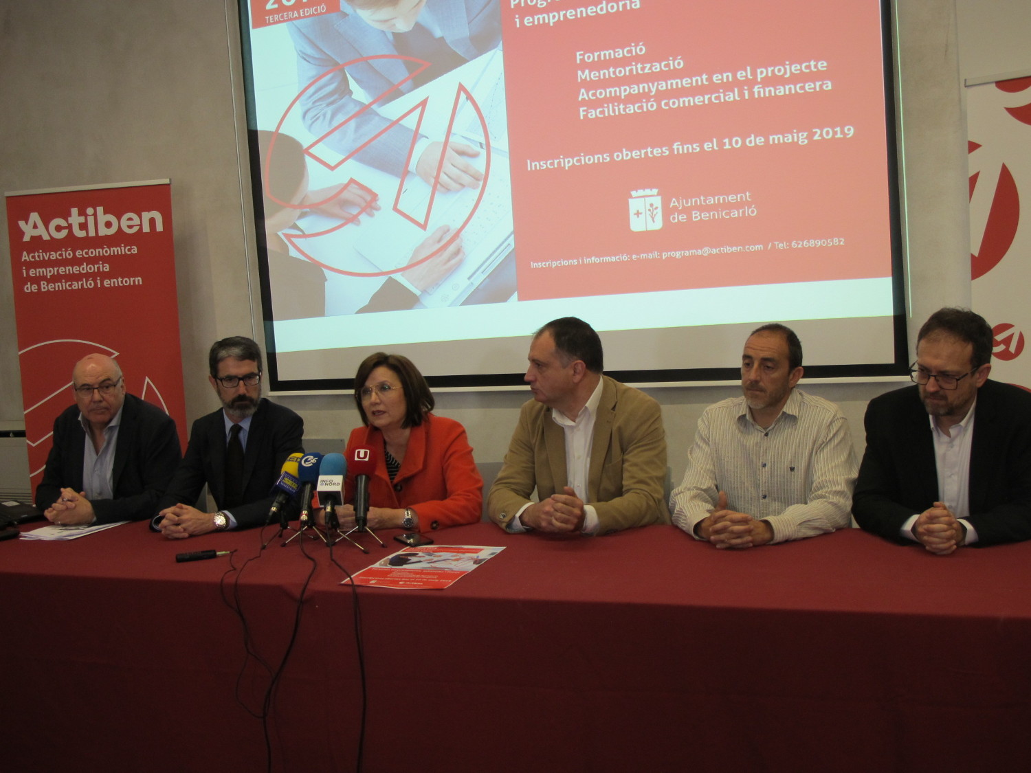 L'alcaldessa de Benicarló, Xaro Miralles, acompanyada del diputat de Promoció Econòmica de la Diputació de Castelló, Salvador Aguilella, el regidor de Promoció Econòmica, Román Sánchez, el director del CEEI Castelló, Justo Vellón, el tècnic de l'Antena Local de la Cambra de Comerç de Castelló, Sergio Gutiérrez, i el director del projecte Actiben, Agustín Castejón, ha presidit la presentació d'aquesta tercera edició, que té com a principal novetat la promoció de la cultura emprenedora entre la joventut.