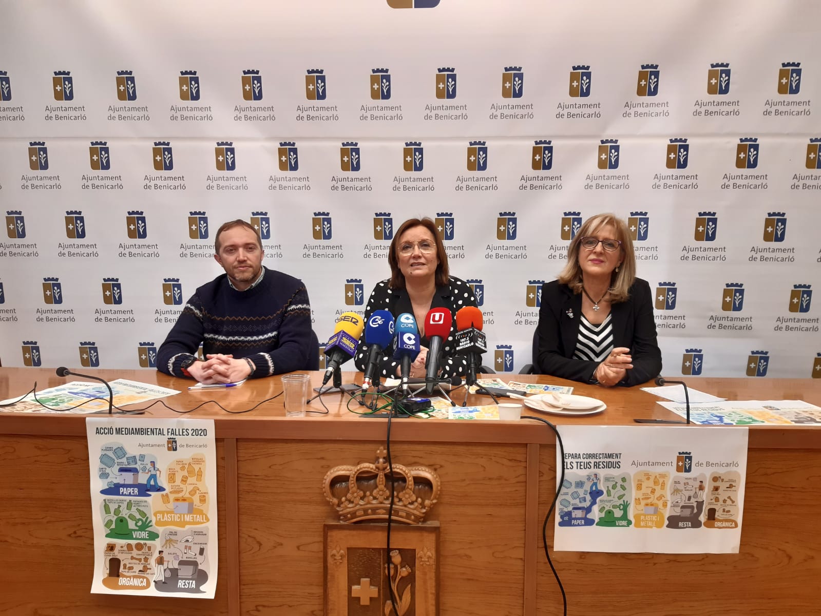 La alcaldesa de Benicarló, Xaro Miralles, acompañada por la concejala de Medio Ambiente, Filo Agut, y el concejal de Fiestas y Fallas, Pedro Manchón, ha presentado la campaña de acción medioambiental que se ha preparado para Fallas, con el objetivo de conseguir unas fiestas más respetuosas con el medio ambiente aumentando el reciclaje, reduciendo el volumen de residuos generados y eliminando los plásticos desechables. La alcaldesa ha desvelado que «la campaña se inicia ahora con las Fallas, pero le daremos continuidad al resto de fiestas y actividades que organizan las asociaciones y que sean susceptibles de generar residuos».