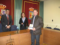 Els guanyadors del XV concurs d'Aparadors de Nadal han rebut el premi de mans de l'alcalde de la ciutat, Marcelino Domingo.