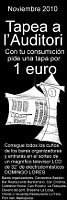 De l'1 al 30 de novembre, els clients dels bars dels voltants de l'Auditori podran participar en la campanya “Tapea a l'Auditori” demanant, juntament amb una consumició de beguda, una tapa al preu d'un euro. D'aquesta manera, amb només un euro més que el preu de la beguda, els clients podran degustar alguna de les tapes típiques del local. L'objectiu és crear en els clients un hàbit de consum de tapes, a més de promocionar la zona dels voltants de l'Auditori, una de les més privilegiades de la ciutat pel fet d'estar pròxima a la platja i al centre de la ciutat, a més de ser una zona exclusiva per a vianants.
