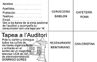 Els locals que participen en la campanya “Tapea a l'Auditori” són: Cafeteria La Lonja, Cafeteria Roma, Bar Cafeteria Can Cristina, Restaurant Benitariano, Cafeteria Lofaro, Can Povero, La Tasqueta de Benicarló, Babilon, Port Vell, Olvida o Recuerda, Metropizza i Davant del Port.